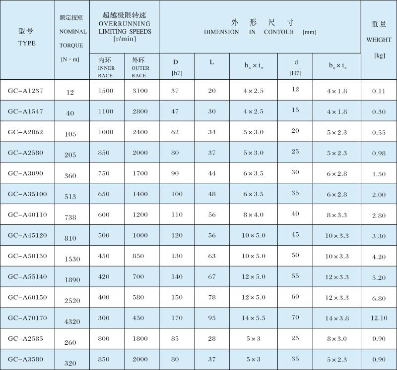 GC-A 滾柱式單向離合器